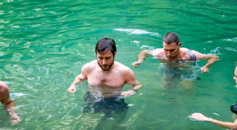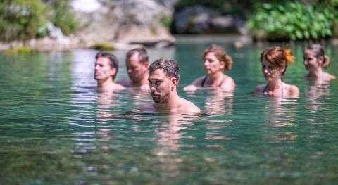 Drugi del delavnice je praksa, kjer tečajniki naredijo več serij dihalnih vaj in se za konec še varno potopijo v ledeno vodo.